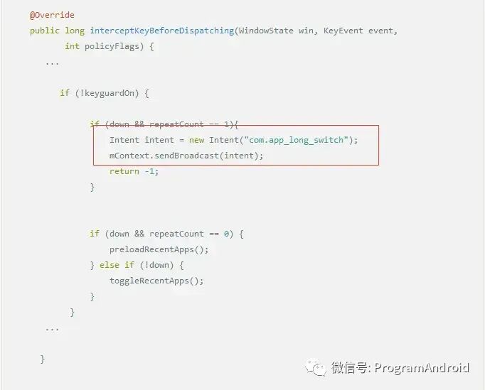 interceptKeyBeforeDispatching 发送广播