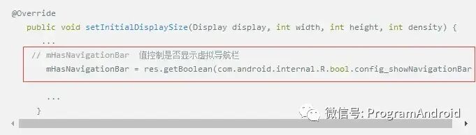 find 路径 -type f -name "文件名" | xargs grep "文件中的字符串"如果上面两个修改都不生效(搜索关键字config_showNavigationBar、qemu.hw.mainkeys),请在PhoneWindowManager 查看setInitialDisplaySize方法中mHasNavigationBar 的值是否被写死,true表示会显示、false表示不显示导航栏。