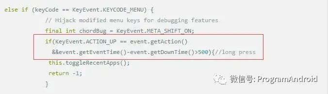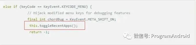 如果想调出最近任务列表,需要拦截menu的事件,在PhoneWindowManager的interceptKeyBeforeDispatching 中处理即可