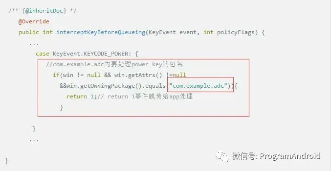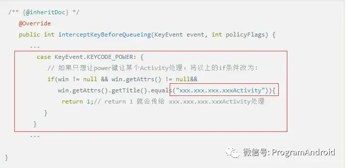 在PhoneWindowManager 中修改interceptKeyBeforeQueueing方法实现让特定的APP拿到Power key 值