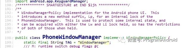 PhoneWindowManager主要用于实现各种实体或虚拟按键处理,如需特殊处理按键,请修改源码。