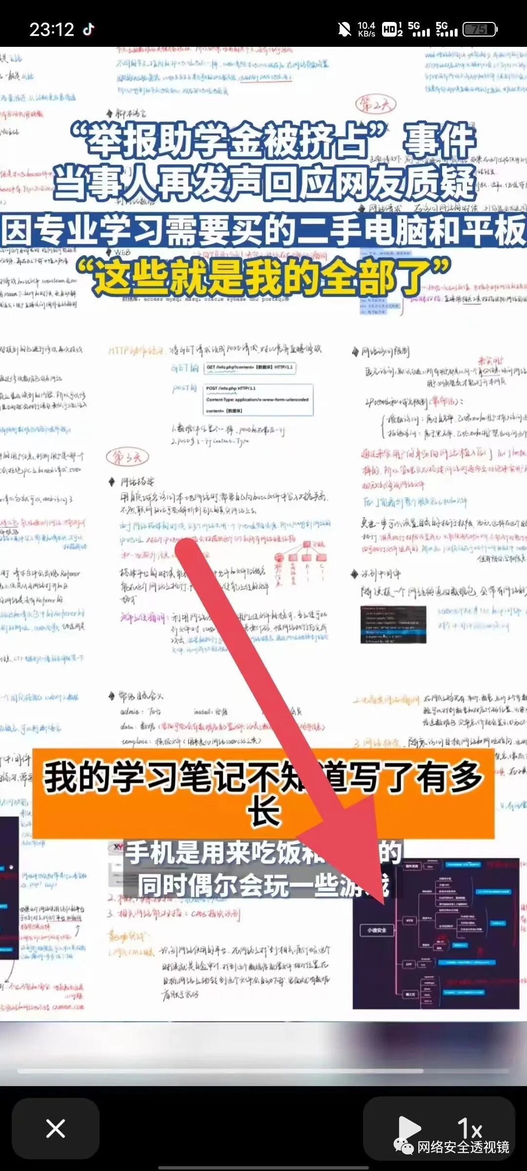 在安全圈内能被这么关注,无非是故事的主人公和信息安全相关。细心的网友发现,主角笔记居然是小迪课程(小迪一阵狂喜)