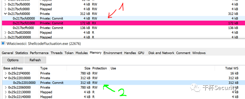 bool isShellcodeThread(LPVOID address){MEMORY_BASIC_INFORMATION mbi = { 0 };if (VirtualQuery(address, &mbi, sizeof(mbi))){//// To verify whether address belongs to the shellcode's allocation, we can simply// query for its type. MEM_PRIVATE is an indicator of dynamic allocations such as VirtualAlloc.//if (mbi.Type == MEM_PRIVATE){const DWORD expectedProtection = (g_fluctuate == FluctuateToRW) ? PAGE_READWRITE : PAGE_NOACCESS;return ((mbi.Protect & PAGE_EXECUTE_READ)|| (mbi.Protect & PAGE_EXECUTE_READWRITE)|| (mbi.Protect & expectedProtection));}}return false;}