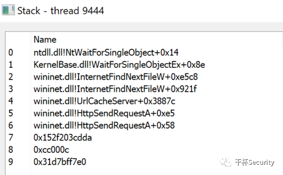 欺骗后的线程调用堆栈: