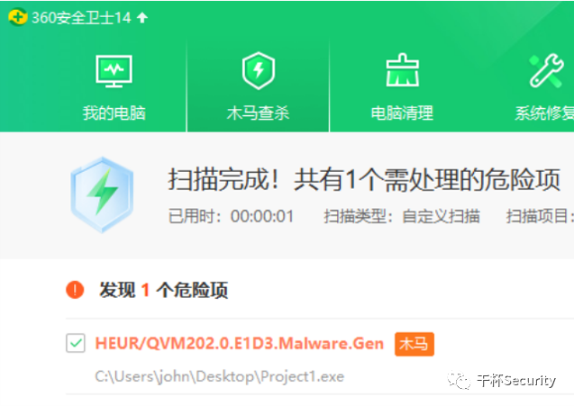 以360为例,常规我们编译出来的文件经常爆QVM202,但是当我们添加资源文件后,我们即可绕过QVM202