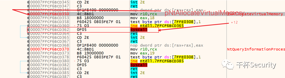 NtAllocateVirtualMemory PROCmov r10, rcxmov eax, wNtAllocateVirtualMemorysyscallretNtAllocateVirtualMemory ENDPUINT_PTR pNtAllocateVirtualMemory = (UINT_PTR)GetProcAddress(hNtdll, "NtAllocateVirtualMemory");wNtAllocateVirtualMemory = ((unsigned char*)(pNtAllocateVirtualMemory + 4))[0];