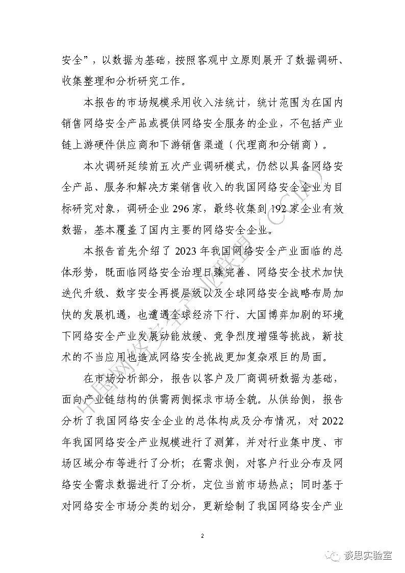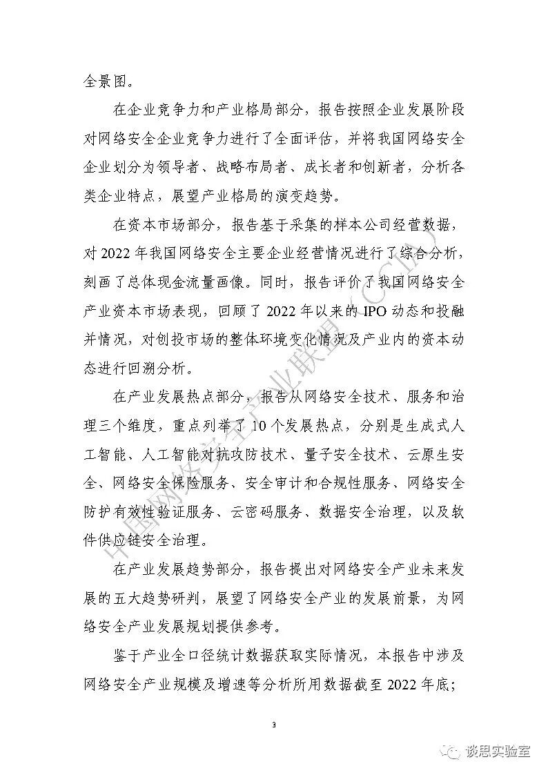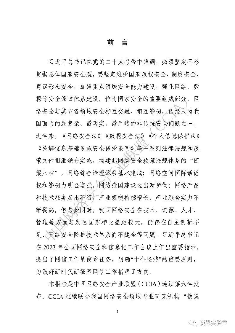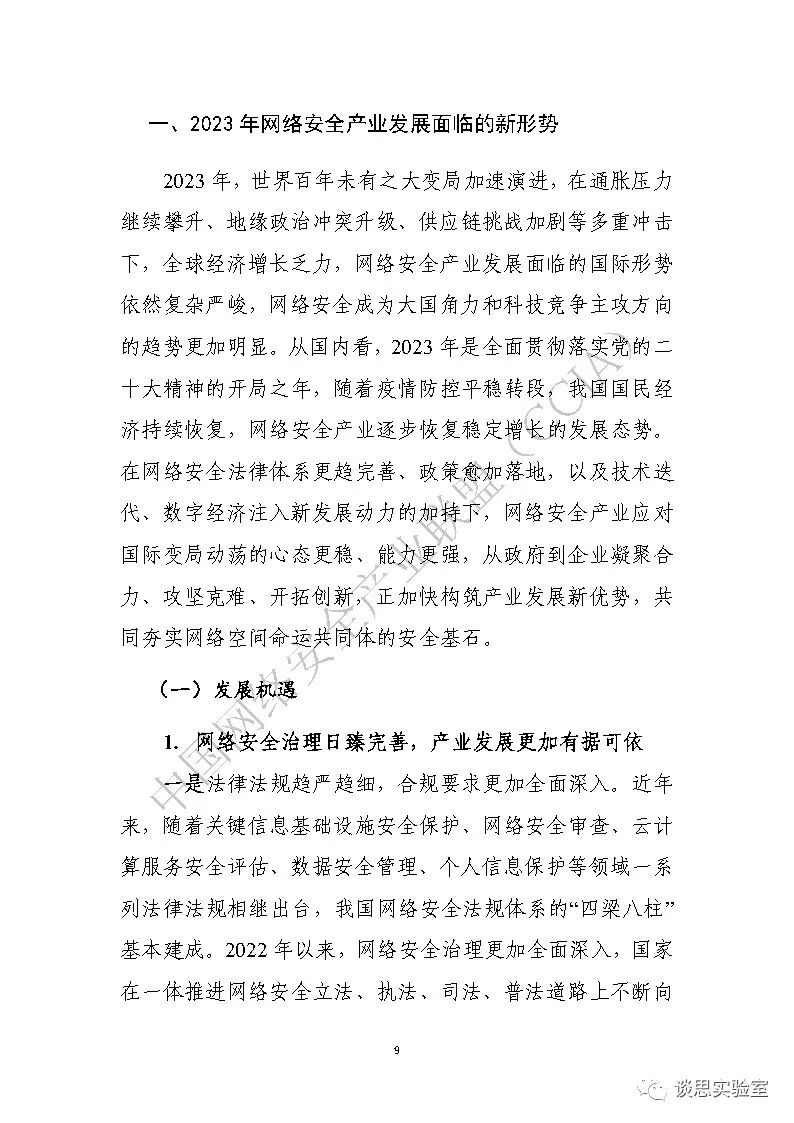 《中国网络安全产业分析报告(2023年)》(以下简称“《报告》”)由中国网络安全产业联盟(CCIA)发布,中国电子技术标准化研究院、数说安全提供研究支持。2023年9月16日中国网络安全产业联盟在国家网络安全周上发布PPT版本,本篇文章为报告全文。