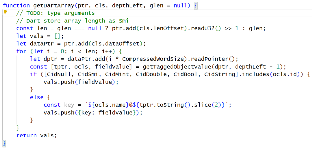 这里我们只hook到一个数组的值,另一个数组的类型是TypeArguments,研究了一下blutter_frida.js后发现作者还没有对这种数据类型格式提供hook支持。