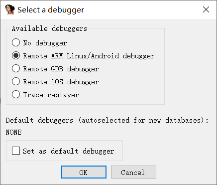 在IDA中选择调试器为Android debugger。