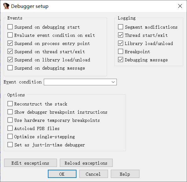 随后点击Debugger->Debugger options...选择如下配置: