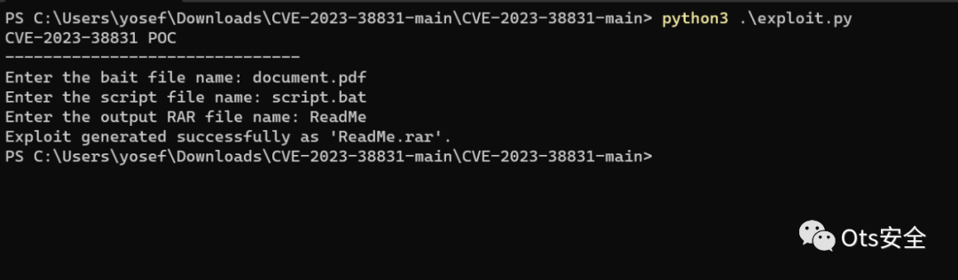 这种方法利用该位置可用的漏洞,简化并提高了调试的清晰度。https://github.com/HDCE-inc/CVE-2023-38831