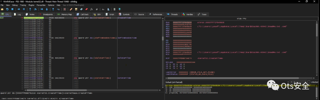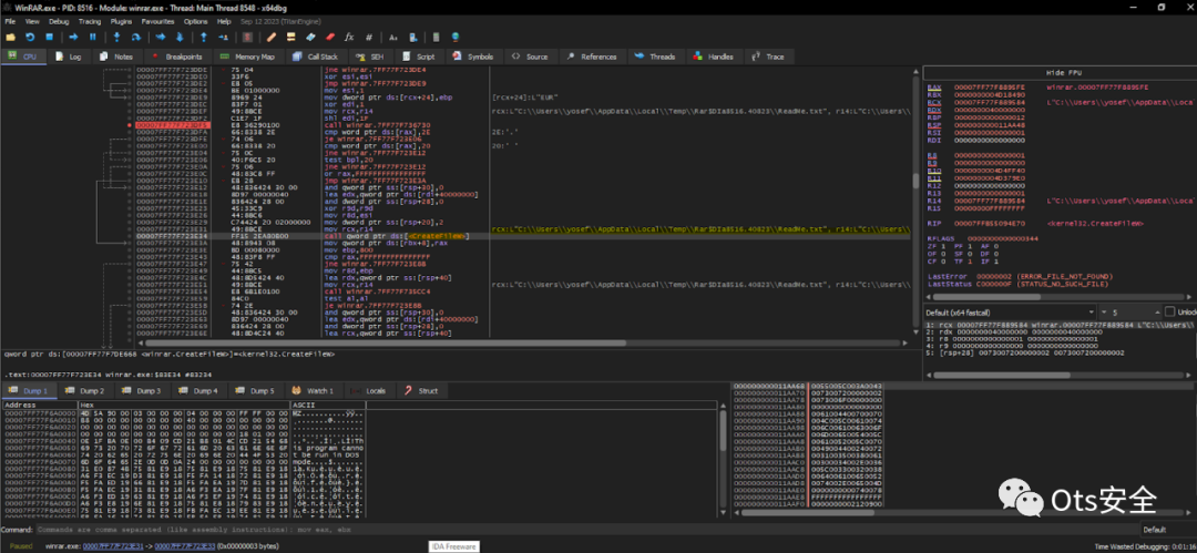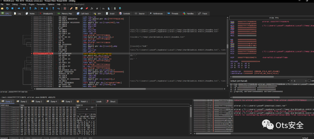 然后,WinRAR 将通过调用winrar.7FF77F736730 函数来创建文件。该函数的第一部分是检查文件名末尾是否有空格