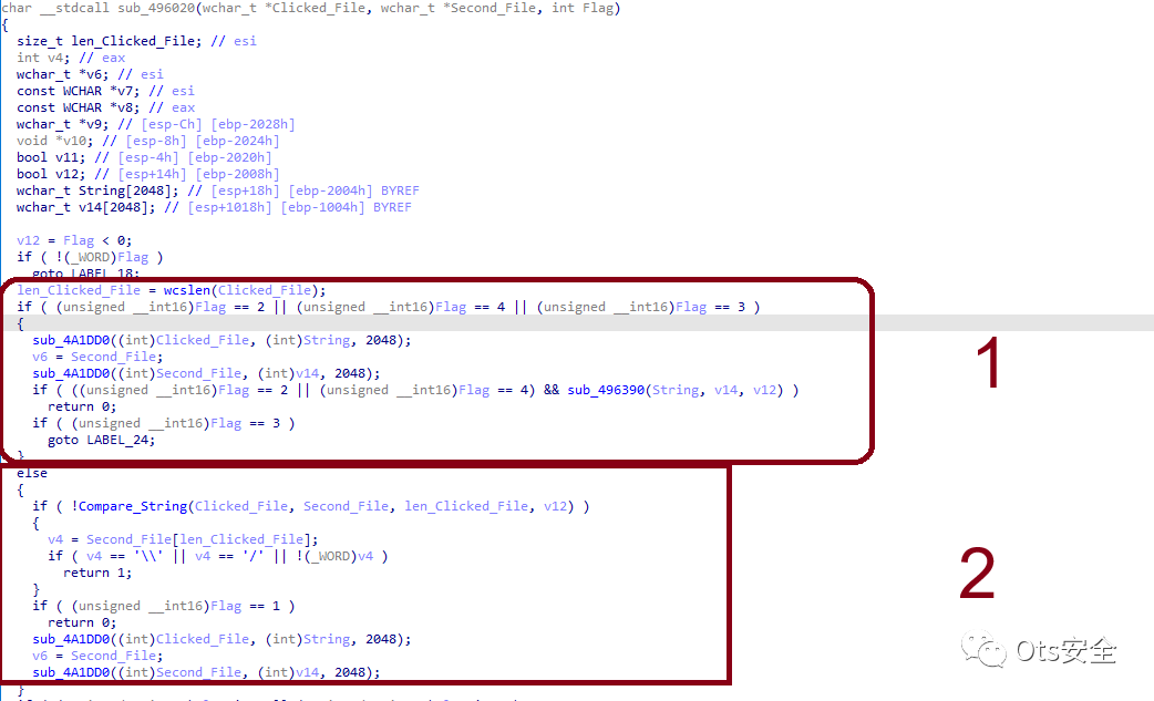 总结一下这个分析,当用户单击 WinRAR 文件时,它会调用Compre_string函数来比较文件名和目录名的字符长度。