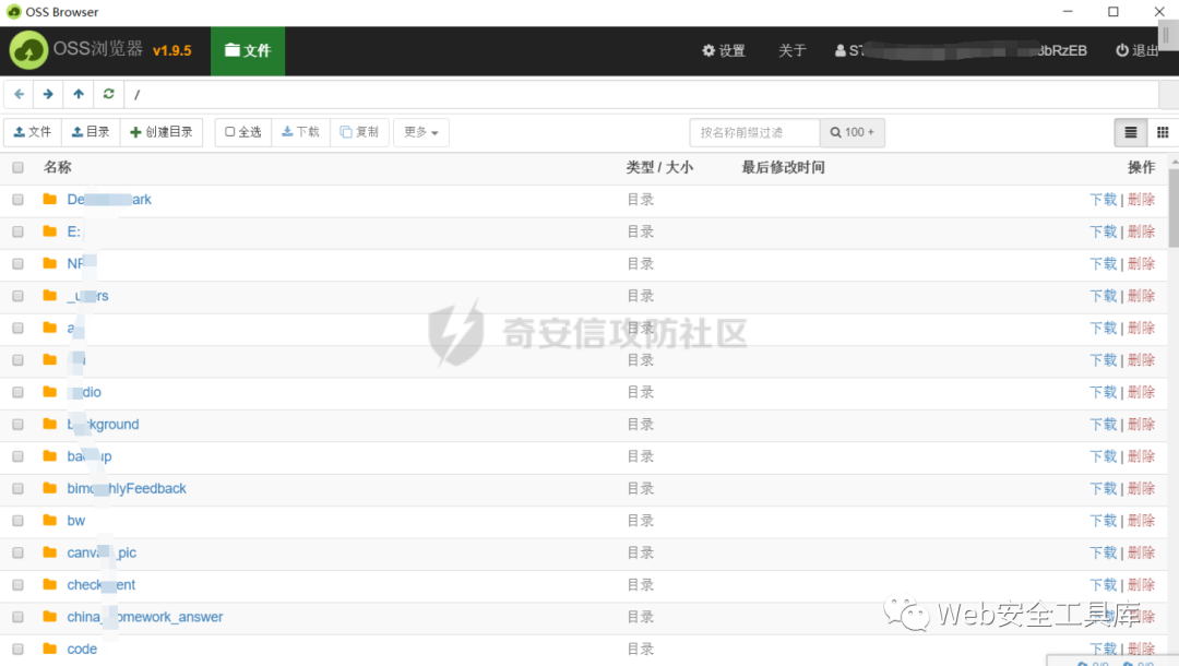 这里因为是阿里云的,所以这里直接使用oss browser来进行利用,利用成功: