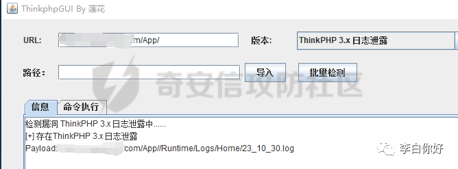 6.该站点基于ThinkPHP框架开发,上工具跑出日志泄露