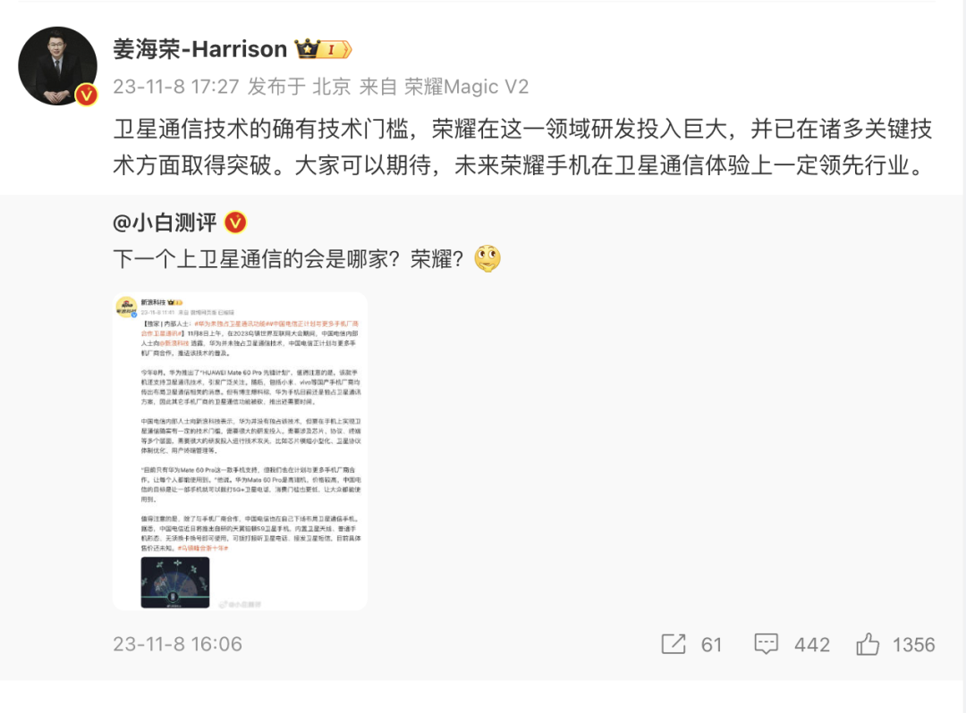 据新浪科技,中国电信内部人士透露,华为并未独占卫星通信技术,中国电信正计划与更多手机厂商合作,推进该技术的普及。今年 8 月,华为推出了「HUAWEI Mate60 Pro 先锋计划」,值得注意的是,该款手机还支持卫星通讯技术,引发广泛关注。随后,包括小米、vivo 等国产手机厂商均传出布局卫星通信相关的消息。但有博主爆料称,华为手机目前还是独占卫星通讯方案,因此其它手机厂商的卫星通信功能被砍,推出还需要时间。中国电信内部人士表示,华为并没有独占该技术,但要在手机上实现卫星通信确实有一定的技术门槛,需要很大的研发投入。需要涉及芯片、协议、终端等多个层面,需要很大的研发投入进行技术攻关,比如芯片模组小型化、卫星协议体制优化、用户终端管理等。他说:「目前只有华为 Mate60 Pro 这一款手机支持,但我们也在计划与更多手机厂商合作,让每个人都能使用到」。对此,荣耀终端有限公司中国区 CMO 姜海荣在微博发文称:「卫星通信技术的确有技术门槛,荣耀在这一领域研发投入巨大,并已在诸多关键技术方面取得突破。大家可以期待,未来荣耀手机在卫星通信体验上一定领先行业」。美国「室温超导」论文被《自然》杂志撤稿