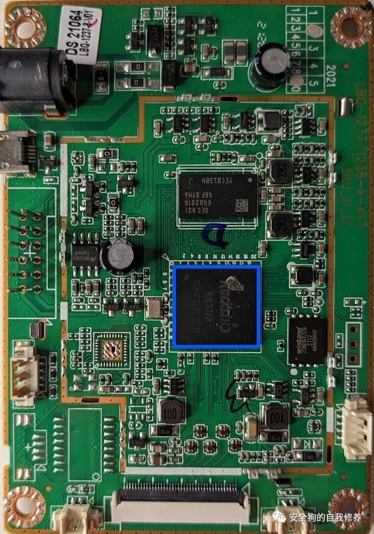 第一次查看这样的PCB时,我们首先要记下任何零件号,看看是否能找到任何数据表。第一个让我印象深刻的组件以蓝色突出显示。