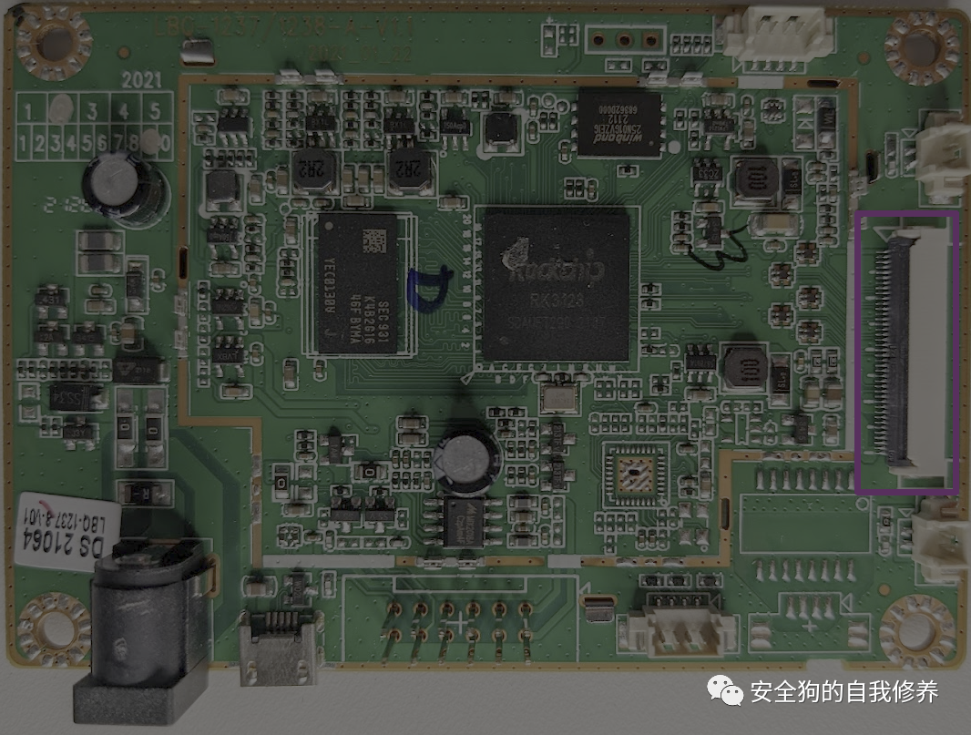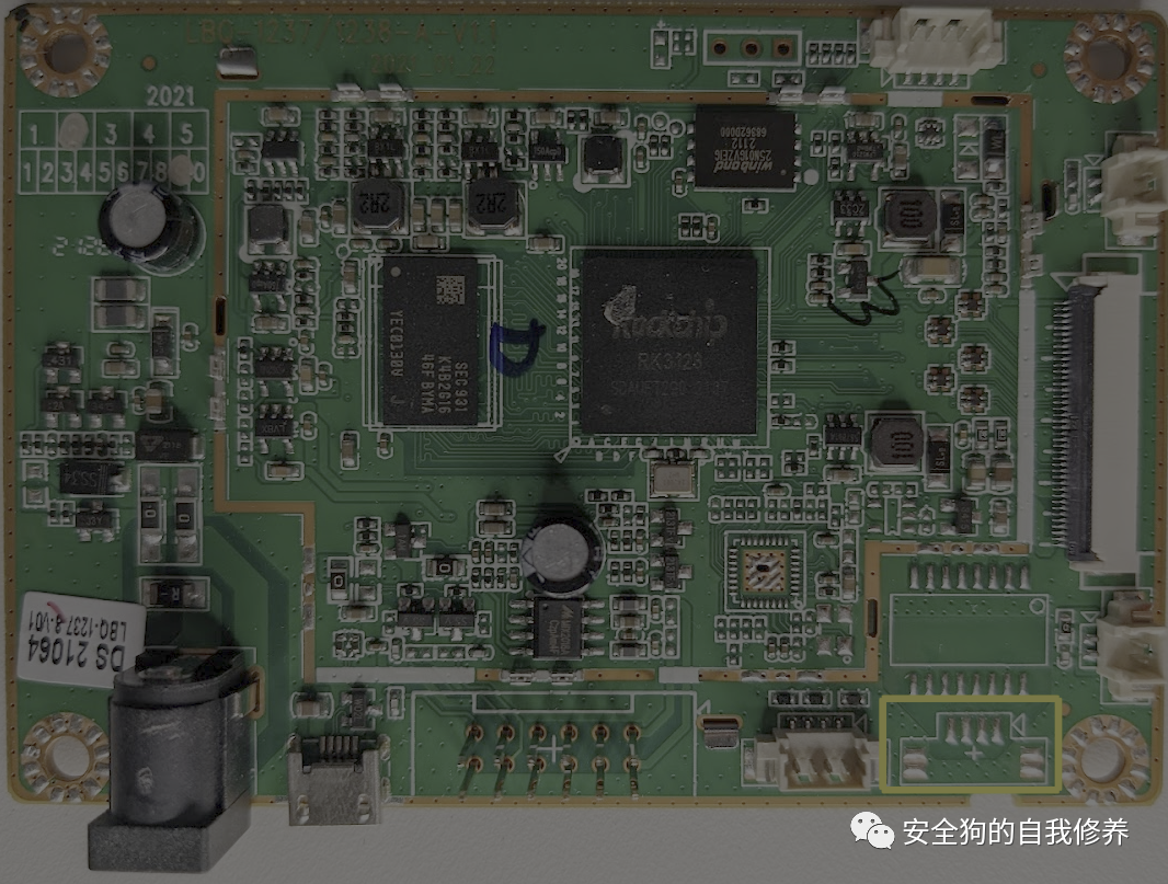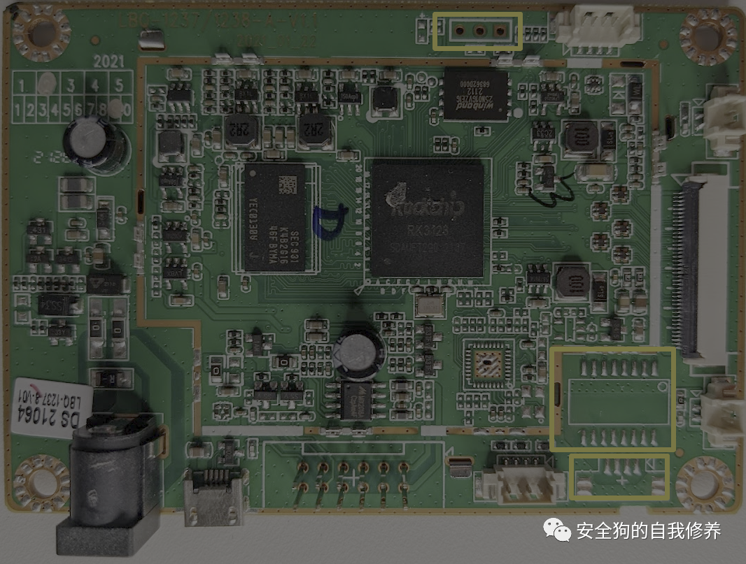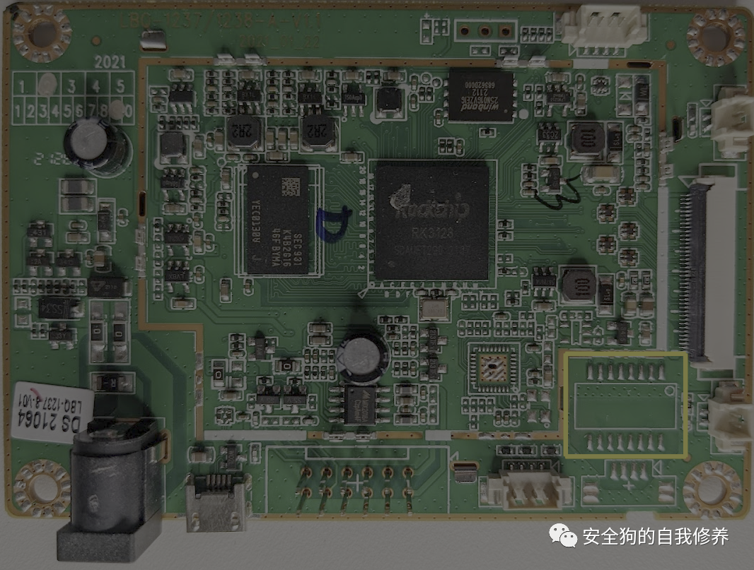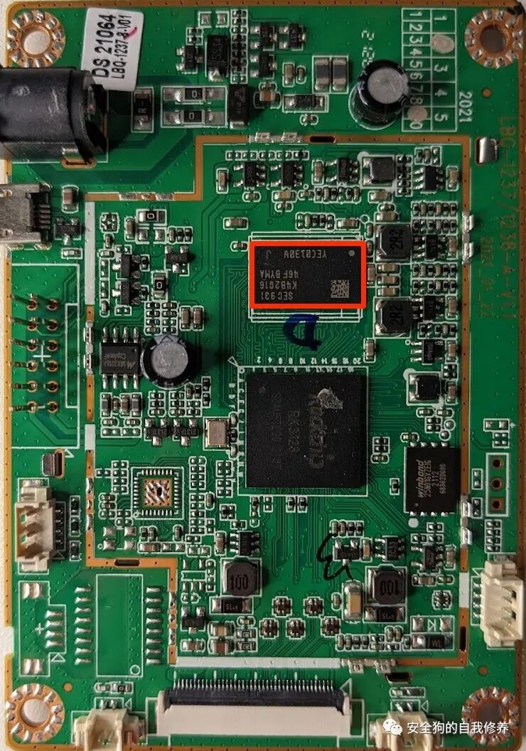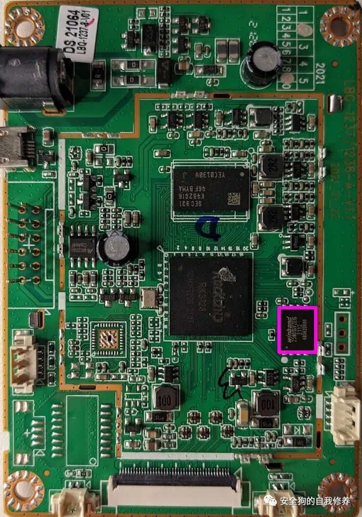 到目前为止,我们已经确定了可能是主CPU和外部RAM的内容。但是,我们仍然缺少一种非易失性存储。因此,接下来,让我们检查下面以粉红色突出显示的组件。