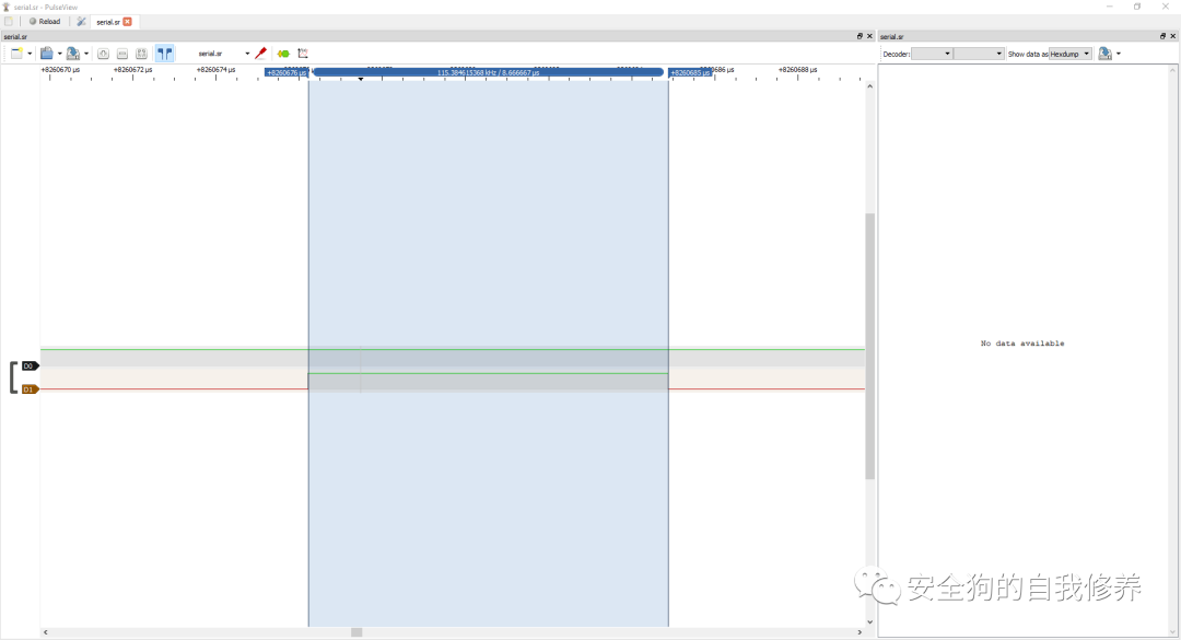 选择小脉冲范围后,Pulseview 将自动计算频率并以赫兹为单位进行测量,如下图所示。