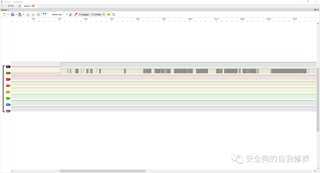 即使使用上面的数据包定义,我们也很难确定逻辑捕获的内容。幸运的是,Pulseview 有一个我们可以利用的 UART 解码器。