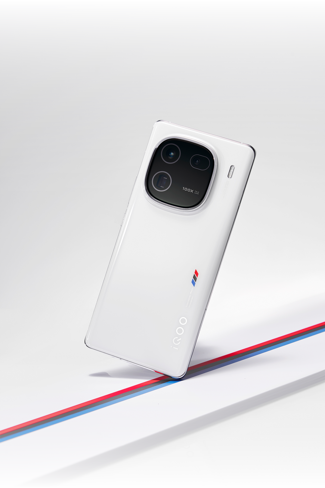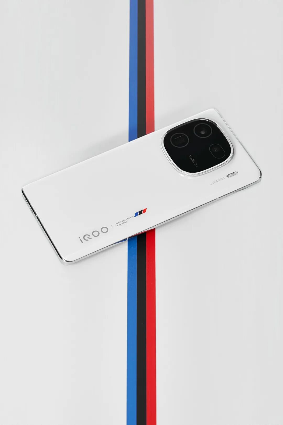 正如每一代 iQOO 传奇版机型那样,iQOO 12 系列的传奇版机型也沿用了白色基底辅以三色条纹的设计元素。