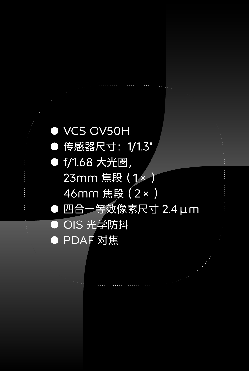 主摄采用了全新的 1/1.3 英寸 VCS OV50H 5000 万像素大底传感器,具备出色的感光能力,能够接收接近人眼光谱的图像信息,还原更加真实的色彩。配合 OIS 光学防抖和 PDAF 相位对焦,大幅增强手持拍摄的稳定效果。