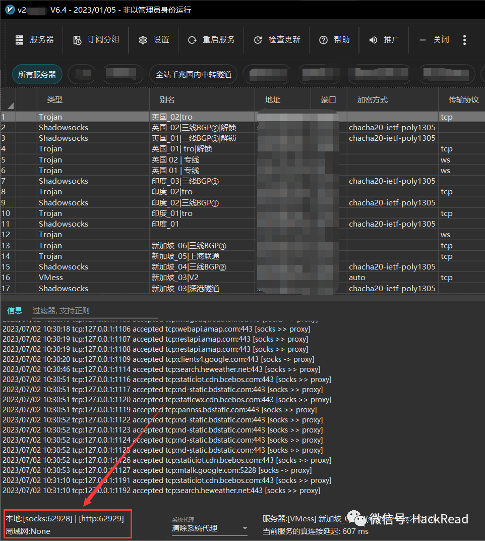 注:使用本地代理端口,请先测试本地客户端的代理能否可用