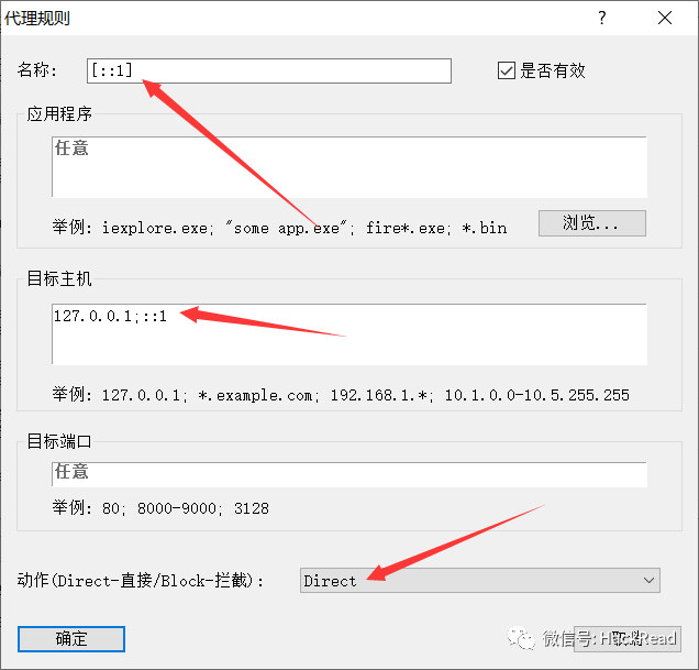 应用程序处点击“浏览”可以设置指定程序,目标端口处可以设置指定端口(一般不设置)