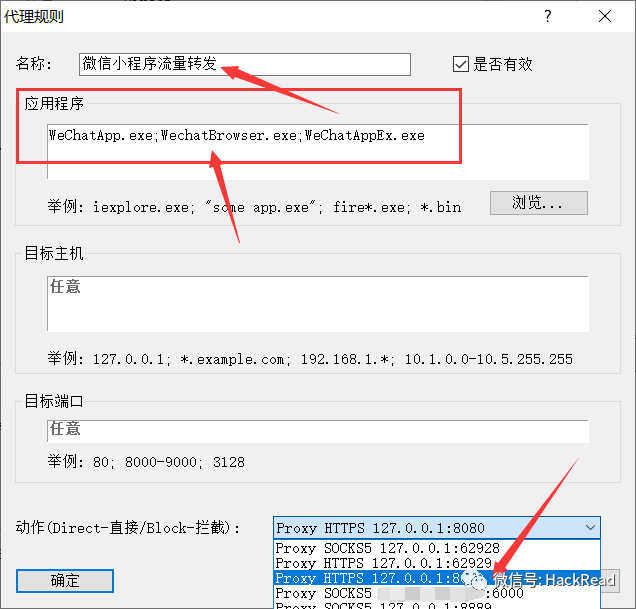 WeChatApp.exe;WechatBrowser.exe;WeChatAppEx.exe这里的代理服务器我使用的是 HTTPS://127.0.0.1:8080 这个要看你抓包软件中的配置了,如下: