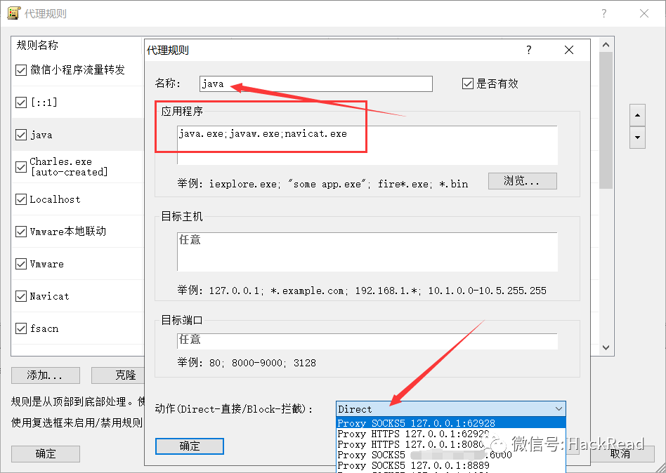 特别注意:Burp是通过java启动的,那上面配置的java相关的规则要选择 Direct (直接连接,即不走任何代理),否则两者会冲突!!!