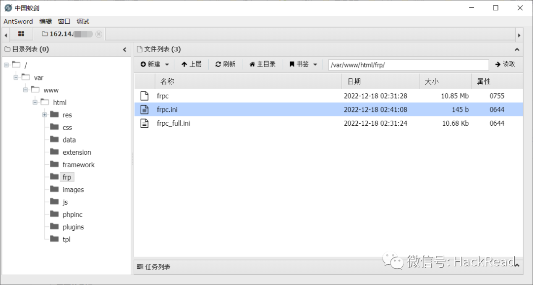 客户端通过WebShell上传,frps上传到自己的公网服务器上,配置frps.ini: