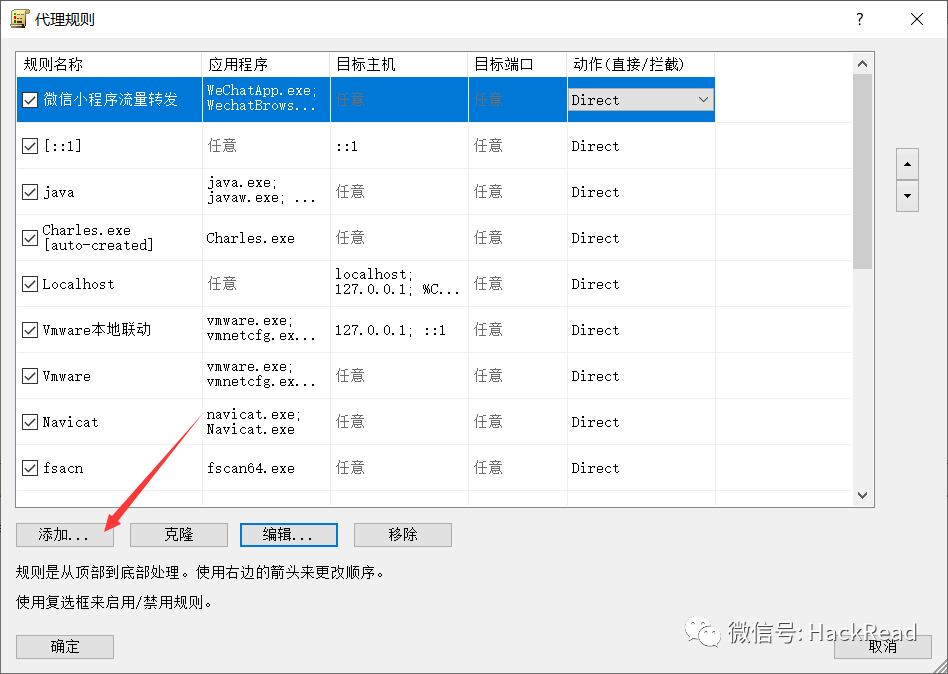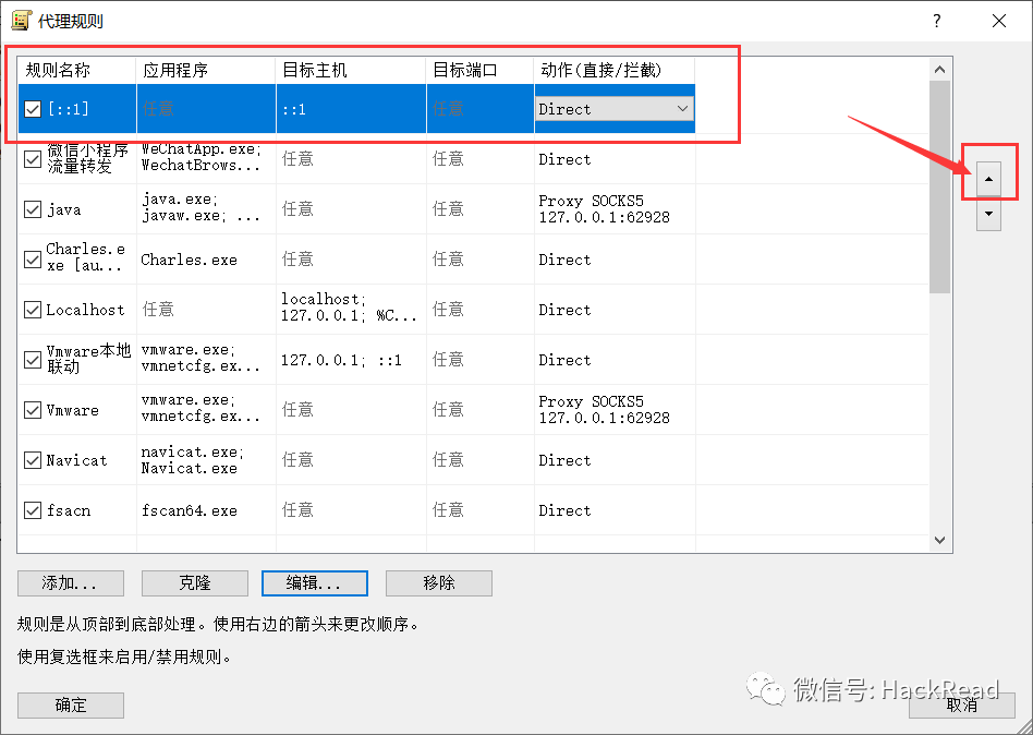 由此,这条规则在代理列表里面要处于最高(优先进行),如下: