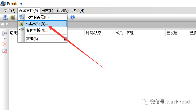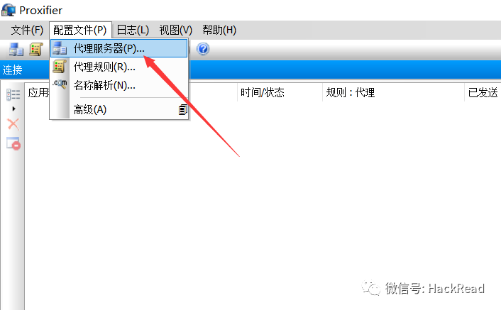 打开安装好的 Proxifier ,点击菜单栏“配置文件”中的“代理服务器”