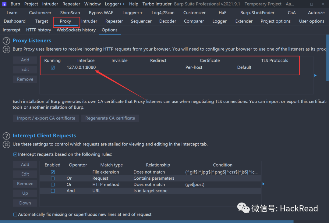 注:这里Burp中 Proxy 的 Intercept 要选择将流量放行
