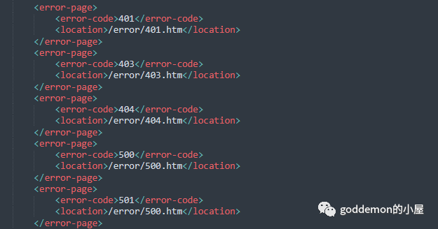 代码中配置了相关的404 500页面,即当出现了这种情况时,直接报错相关的404与500页面出来