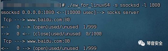 ./ew_for_linux64 -s ssocksd -l 1080本机机器