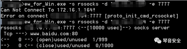 ew.exe -s rssocks -d B目标机IP -e 7777连接进行测试,成功