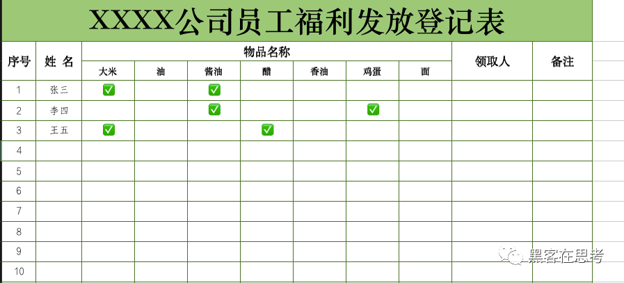 接着配合福利登记表,让其填写完毕之后发送回来,我们可以预先填进去几个姓名,这些直接从LDAP中的用户组找几个填进去即可。