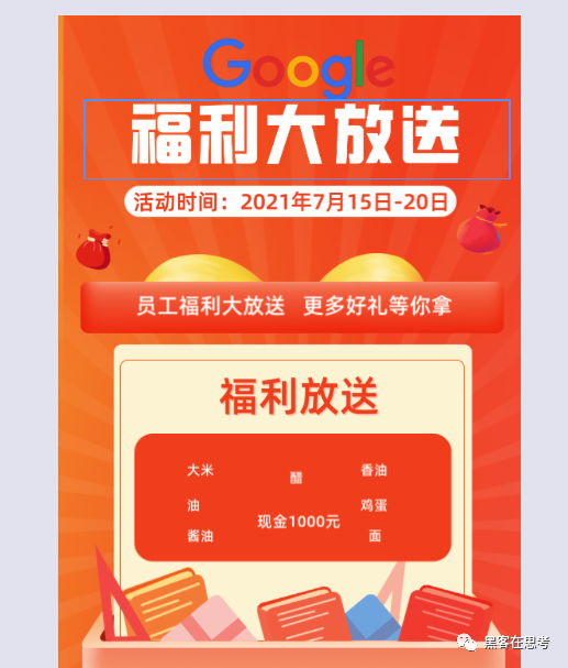 然后把下面的海报转发到朋友圈,营造一种我就是目标公司员工的细节,目标公司的LOGO我用Google代替。