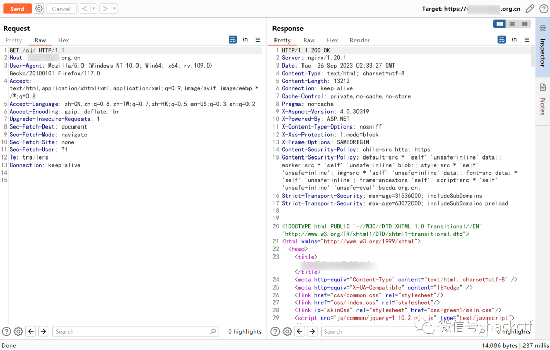 未使用插件前,burp 指纹特征被识别,抓包被拦截