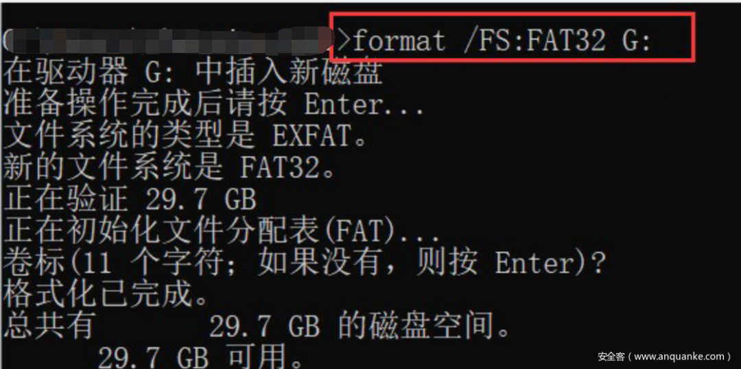win10格式化sd卡命令,X是sd卡所在磁盘名。