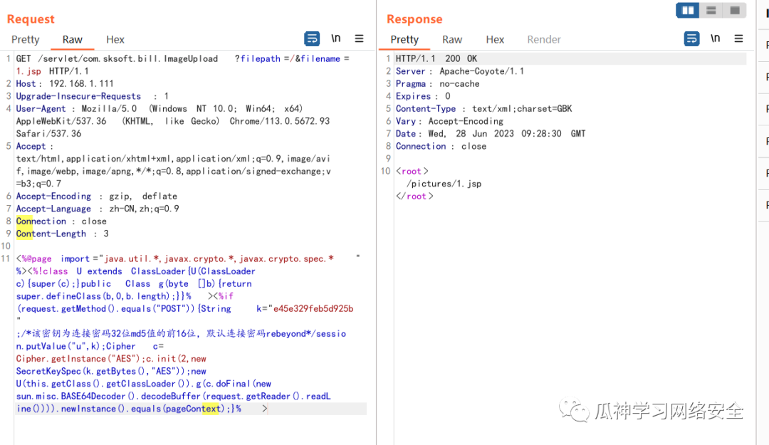 /servlet/com.sksoft.bill.ImageUpload返回null即存在漏洞漏洞利用