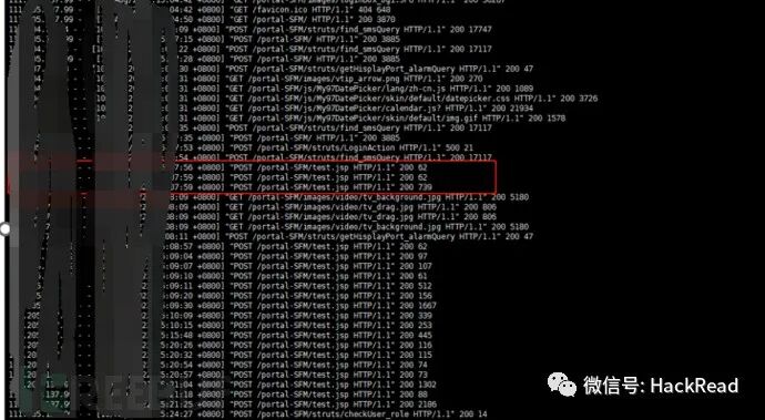 查看Apache Tomact Web日志,于15:07发现可疑文件test.jsp文件,疑似攻击者上传的Webshell后门文件,根据日志分析疑似存在struts2漏洞【查看日志路径存在struts2】。