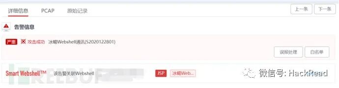 查看态势感知,发现受害主机被上传到Jsp木马,此IP经过威胁情报,被判断为恶意IP。