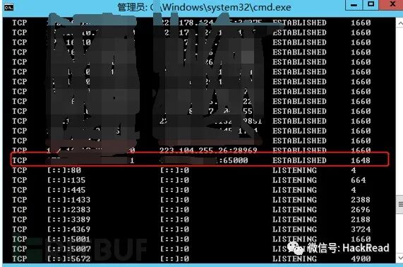 网络连接排查【netstat -ano】:发现可疑网络连接,受害主机回连xxx.xxx.xxx3。