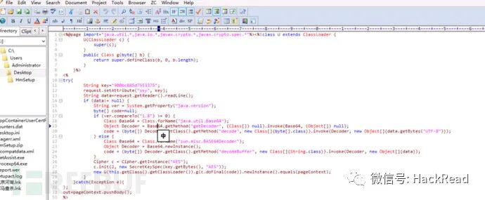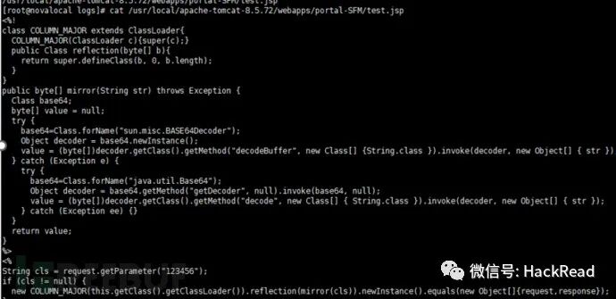 查看test.jsp文件内容,可确认该文件为Webshell后门文件