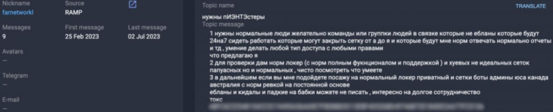 2023年2月,farnetwork转向RAMP论坛,声称他们与Nokoyawa勒索软件合作,充当对方的招聘者和访问管理方。