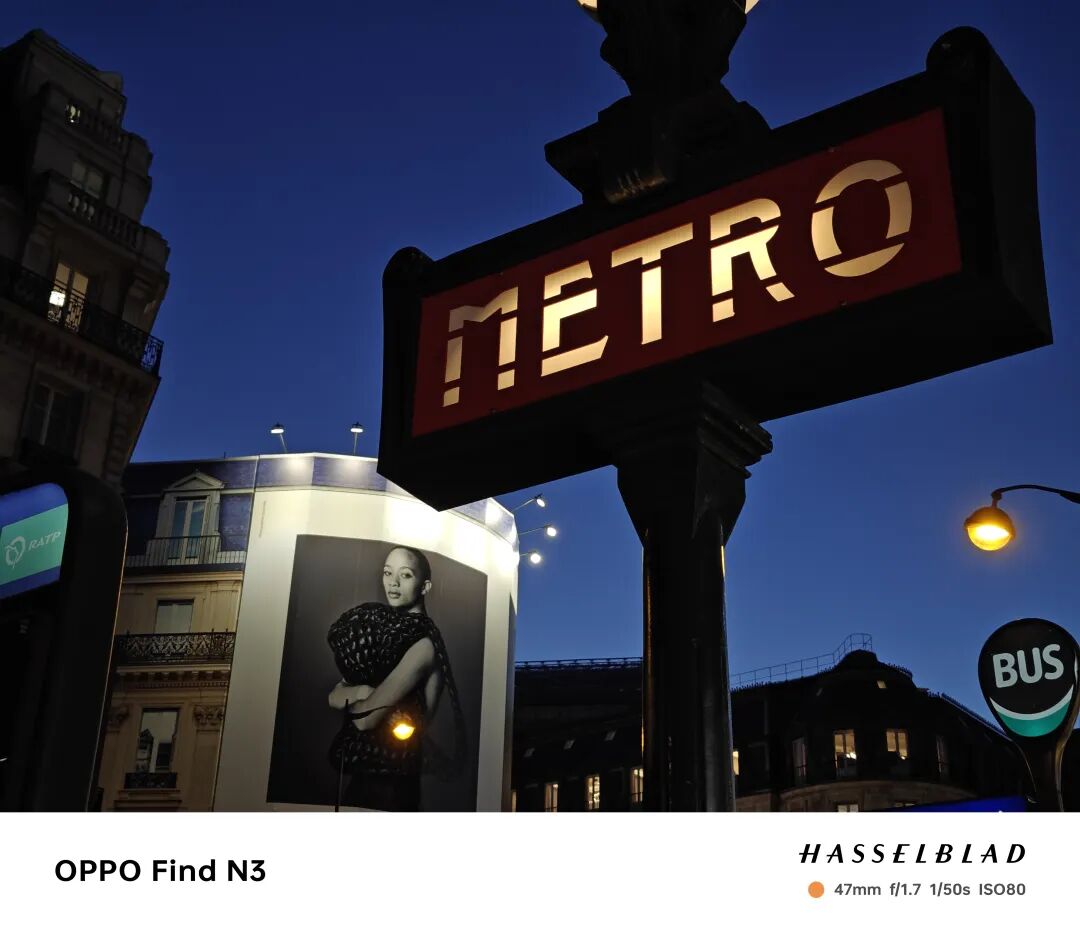 而在蓝调时刻或是小雨沥沥的夜晚, Find N3也能够将那种暧昧的光影很好地呈现出来。这和 Find N3 搭载的超光影图像引擎有很大关系,超光影图像引擎不会让照片的光影信息在色调映射转换过程中,因被压缩而丢失,而是同步记录高达 1200 万的光子点矩阵信息,实现对每个像素的逐一亮度标定,呈现出正确的光影关系。在过去一段时间的体验中,哈苏人像模式也成为我很喜欢的拍摄模式。它在呈现拍摄主体细节同时,同时人物和背景的虚化过渡也十分自然,不会出现「塑料感」的计算痕迹。凭借着折叠屏手机里配置最豪华的长焦镜头,Find N3 在不同焦段都能拍出细节丰富、色彩细腻、作品感十足的人像。尤其是 3× 长焦人像模式 ,这个模拟哈苏 90mm 镜头的焦段,结合自然的光影和恰到好处的虚化算法,体验越来越接近传统相机,呈现接近哈苏专业光学镜头的光斑效果,专业玩家还可以自定义光斑效果和虚化程度。这和我们之前体验 OPPO Find X6 系列的表现基本一致:在保留计算摄影优点的同时,隐去算法的存在感。OPPO 把完整的图像算法导入人像算法里,同时在数字底片阶段进行计算和图像融合,展现自然、高级的影像质感。这也是目前行业中人像模式中算法集成度最复杂最高的,用计算影像的核心算法,而非滤镜和光斑模拟,去重建光影和景深,同时对面部的光影进行雕琢,改善了过往部分人像模式面部过度提亮以及抹平光影的粗暴处理,让人物更有立体感。这也是 OPPO 最大的底气所在。OPPO 影像产品总监张璇表示,「OPPO 的专业哈苏人像提供了领先行业三年的人像摄影效果。」现在这个人像模式也放到了折叠屏里, Find N3 采用了折叠像素技术,这个结构变化让一块 1/1.43 英寸的传感器,实现了媲美一英寸的画质水准,也不用因为厚度和重量妥协焦段和画质。当我漫无目的在巴黎街头上漫步,这种状态与其说是 City Walk ,不如说更像是法语中「flâner」(漫游者),法国学者 Andrea Schellino 认为,「flâner 使没有特殊天赋的人也成为诗人和艺术家」,随时参与城市中。如今手机也使普通人无需天赋也能成为摄影师,成为一个出色的城市观察者。技术固然是实现上述这些效果的关键,可除了硬件素质和软件算法外,不能忽略的还有厂商对影像的审美和理解。我一直认为摄影不只是艺术和技术的集合,更和理念密切相关。用机器和算法,复刻难以数据化的人类审美和感性认知,才是手机摄影的最大的挑战。OPPO 为此组建专职「影像认知团队」,召集影像科学家、摄影师、导演等不同专业背景的专家和哈苏团队合作,尝试搭建一套科学且有效的审美体系,提供了一种新的移动影像思路。就在前两天,OPPO 在参加巴黎影展期间,与哈苏宣布联合打造新一代超光影影像系统,并在下一代影像旗舰 Find X7 系列上首发,影像技术和审美的关系开始被重新讨论。过去很长一段时间,智能手机影像的比拼聚焦于硬件参数,「底大一级压死人」是颠扑不破的真理。计算摄影的出现让移动影像开始靠近相机,很多设备将「拍得清」作为核心标准而牺牲了很多细节以及真实的光影关系,比如将黑夜拍出白天效果的极夜模式,或暴力拉亮度导致明暗失真。而今年大模型的爆发,也让计算摄影发展进入了一个新阶段,AI 开始更深度地和手机摄影结合,但和过去的问题依然没完全解决,如果无法消除「算法味」,反而会让拍出的照片「变假」。OPPO 这次与哈苏的合作,则提出了一个不一样的移动影像理念,用审美牵引未来影像系统的设计与硬件和算法的研发,OPPO 影像产品总监张璇告诉我们:我很兴奋与哈苏的合作迈入全新阶段,通过将影像领域的经典审美与移动影像技术相结合,构建符合移动影像技术特性的审美体系,双方将面向 2024 年打造出持续引领行业的全新一代超光影影像系统与移动哈苏体验。