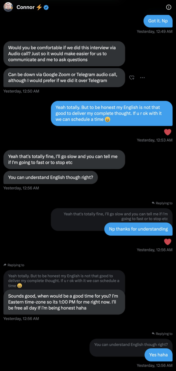 约好采访时间后,攻击者会引导你去 Telegram 参加采访,还给你一份采访提纲。
